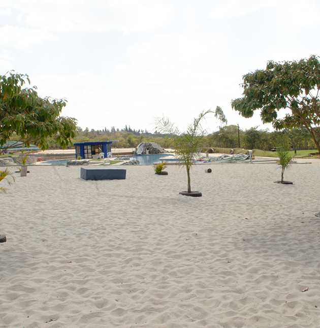Enjoy swimming in our large pool, glide down exciting water slides, or let the kids explore the inflatable play area. Lounge under thatched umbrellas, share a picnic, or take in the view from the water’s edge.